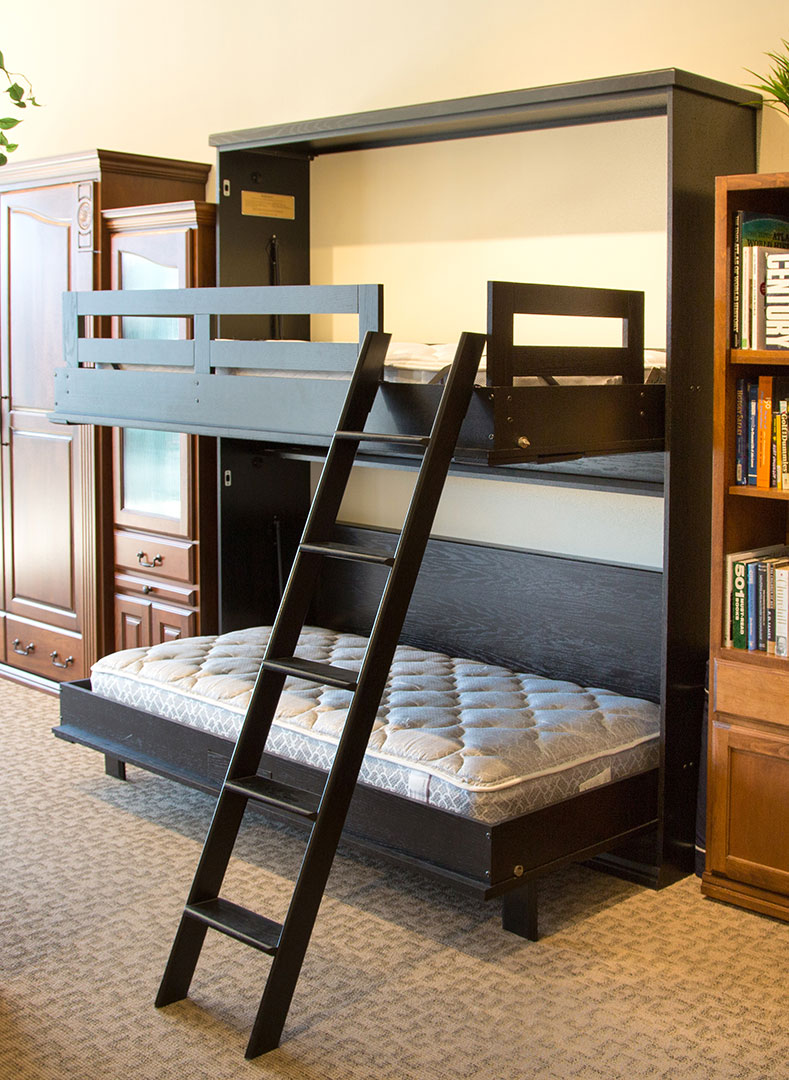 Our El Segundo bedroom furniture is very versatile and the Wilding Wallbeds Murphy Bunk Bed proves just that. When you think of bunk beds, you may think about children’s sleep overs but that is only one of the options you have. Our top bunk will hold up to 2400 lbs so unless you invite a mature bull over for a night, you shouldn’t have a problem with weight. The beds can be twin or twin xl and the frame comes with the ladder and the railings for the top. Each bed is independent of the other so you have the option of pulling out one or two mattresses. This bed is perfect for cabins, fire houses, a dormitory or a child’s bedroom that needs more floor space for play.
