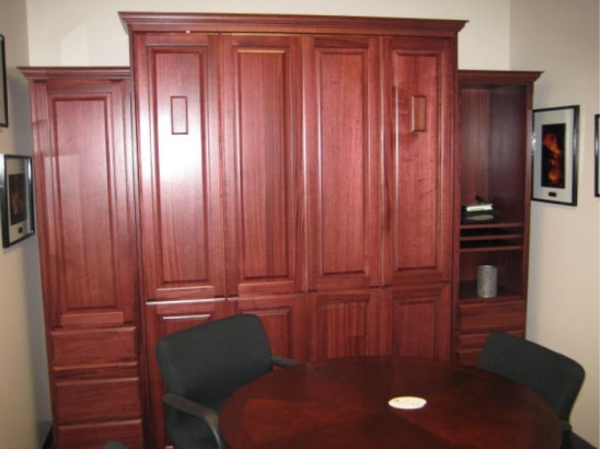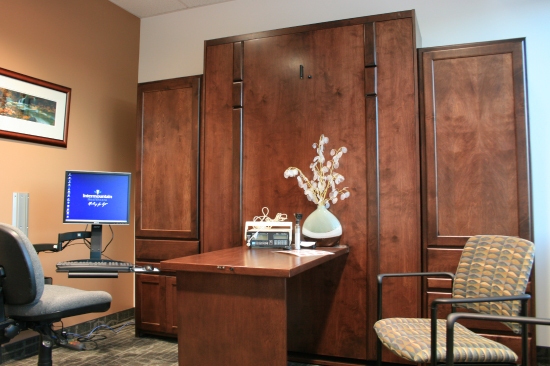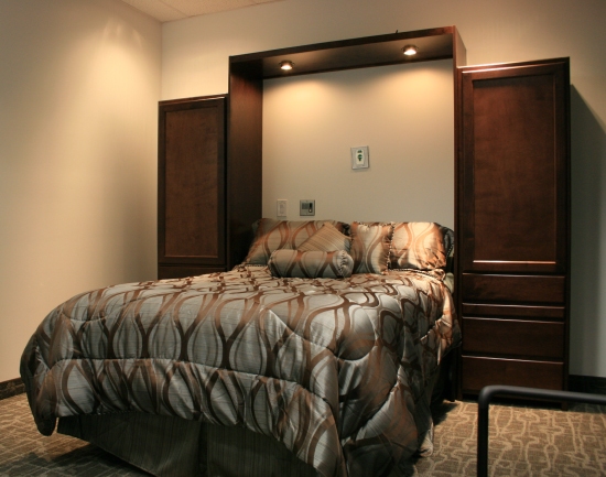 Wilding Wallbeds are certainly not just for home use. Wallbeds are gaining popularity by leaps and bounds for the professional setting too. Wilding Wallbeds add order, beauty and function to any commercial setting. Firehouses, Sleep Labs, Hotels & Motels, Time shares, Hospitals and Shelters are perfect examples of this. These beautiful Wallbeds and Murphy beds provide a wonderfully professional setting during the day and give a wonderfully comfortable night’s sleep during the night.