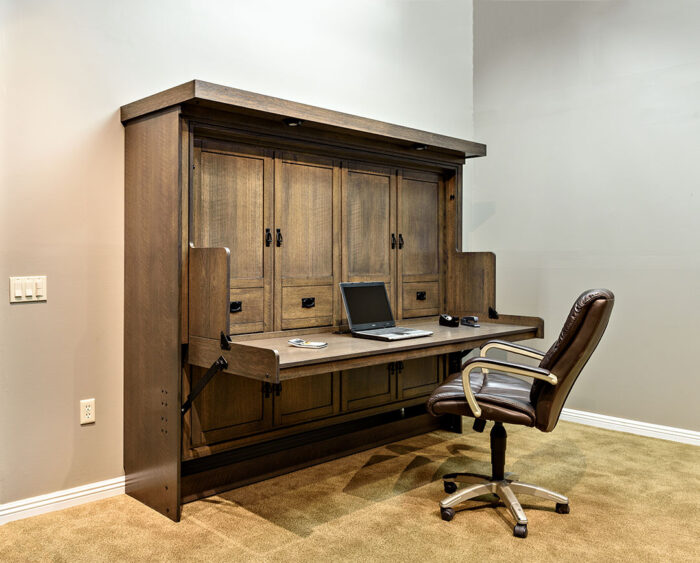 If you are a student, or work from home in a home office, then this is one of the most convenient products you will find from Wilding Wallbeds, your Nevada wall bed supplier. The Murphy Desk Bed allows you to conserve that precious living space by giving you a functional office desk and a comfortable bed all in one easy to use product. This bed is convenient to use, because it does not require you to remove any objects from your desk before lowering the bed. The technology involved with this product keeps your desk parallel to the ground no matter what position it is in. This product allows you to choose from 27 different woods and finishes.