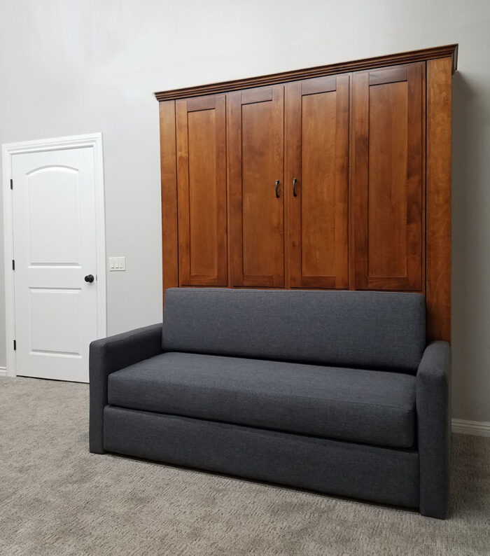 We simply can’t talk about Murphy beds by Wilding Wallbeds without mentioning our customer favorite, The Remington Murphy Bed. This simple, yet classic design features a solid wood design, complete with crown molding, your choice of wood finishes and add ons or accessories. Many of our customers like to add on side cabinets to this design for added storage. Find out how you can get this Murphy bed shipped to you from us, your premier Henderson wall bed supplier.