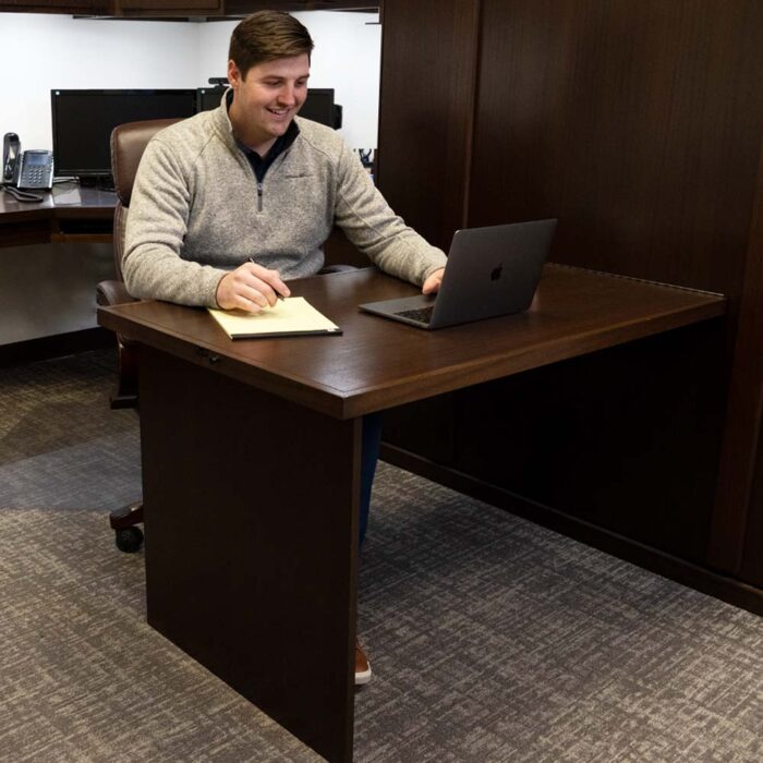 The desk surface is 36-48 inches long and 30 inches wide, depending on which options are selected, coming in one streamlined design. It’s a wall bed with a pair of connected planks that, when released, can be unfolded into a table. Click here for more information on our rates and options. The bottom lock releases the leg, and the top lock releases the top. When fully extended, this tabletop surface is the perfect size for writing letters, reading, working from home on a laptop or other devices, putting together a puzzle, and more. Next, let’s take a look at the Murphy Desk Bed.