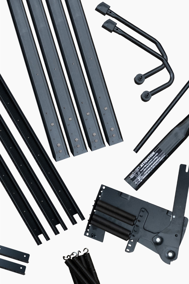 We use the spring lift mechanism in all of our Studio series beds, Sofa Murphy beds, and DIY kits. If you are looking to build your own Murphy bed look no further. We sell the spring lift mechanism by itself to cabinet shops who are looking for the best mechanism on the market. It is easy to use and comes with plans and cut lists to show you how to build the Murphy bed properly.