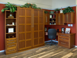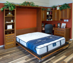 Wilding Wallbeds makes dozens of beautiful Wallbed and Murphy bed furniture options. Wallbeds and Murphy beds lift up and store your bed and mattress out of the way when you need the space for daily office use, and lower easily as a guest bed when you have company. A queen size bed will fit into only 16” x 64” of space! Can you imagine that! A whole bedroom in so little space. Wilding Wallbeds offers many styles, wood varieties and stain and paint choices, so the selection is huge. I found it quite easy to locate a Murphy bed that fit my décor just right. The Wallbed / Home Office furniture option was especially helpful for me as I turned one room into both my home office and my extra guest room. Additionally, Wilding Wallbeds offers many standard and custom cabinet options that can accompany the Wallbed and provided additional spaces for me to store all of my office supplies and clothing too. In this one room, I was also able to eliminate other bulky, less functional pieces of furniture. What I ended up with was a beautiful, clean, uncluttered, functional office and guestroom. My psyche began to be happier…