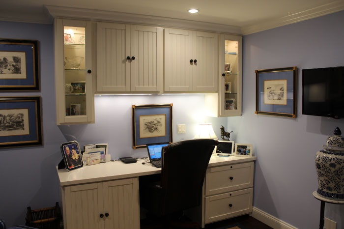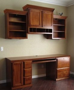 Select upper cabinets for storing books and office supplies or displaying office decor.