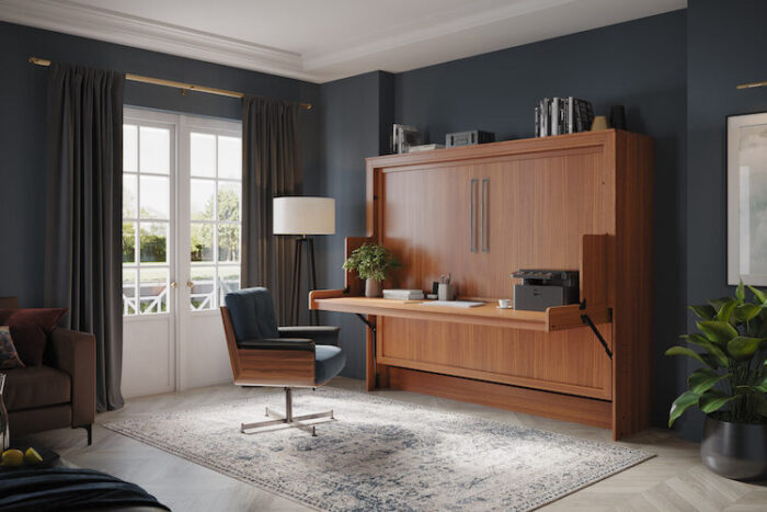 After retiring, a couple traded their 2,500-square-foot family home for a 600-square-foot condo in sunny Arizona. While they loved the simplicity of downsizing, they quickly realized they missed having space for visiting grandchildren and an office to manage daily tasks. Their solution was a Wilding Wallbeds Murphy Desk Bed that perfectly blended functionality and comfort.
