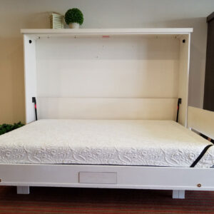 We offer two models of this Pillow Keeper. One is designed specifically for any of our HomeFront Series Side Mount Wallbeds ($139). The other model is designed for use in any of our Murphy Desk Beds ($189). The Pillow Keeper will be constructed of the same wood and in the same finish as your wallbed. During the day, or while the bed is not in use, this HomeFront Series Pillow Keeper can easily store beneath your mattress or against the wall inside the wallbed.