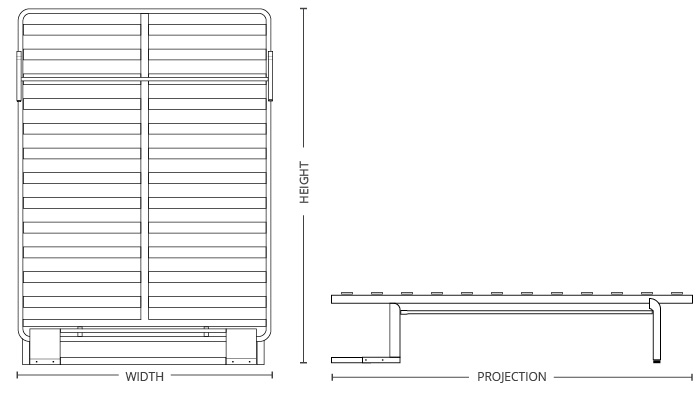 Height Width Depth Projection Queen 79.75″ 59.375″ 12″ 85″ Full 76″ 53.75″ 12″ 85″ Twin 76″ 38.25″ 12″ 81″ -