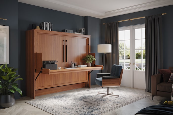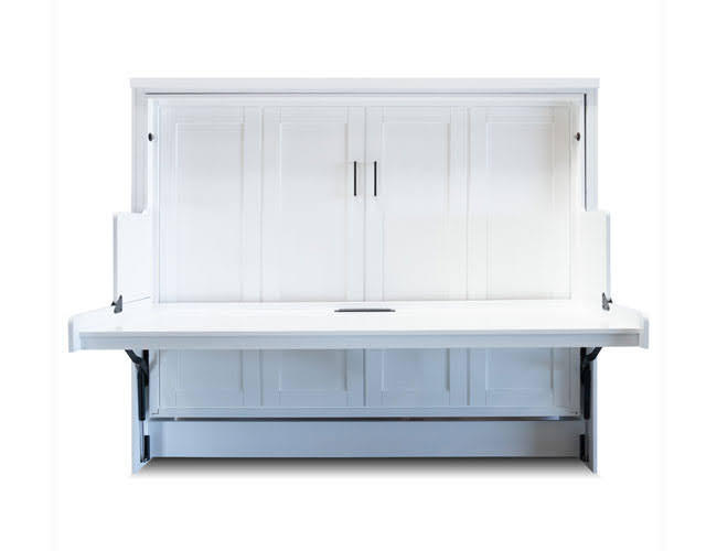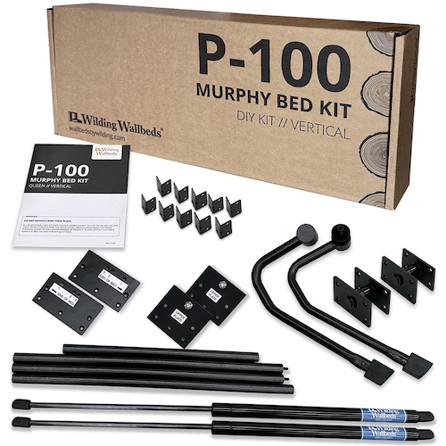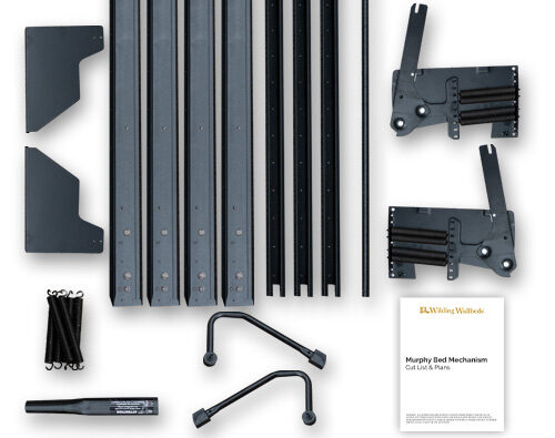 The D-200 is the ultimate Murphy Bed with Desk DIY Kit. This mechanism is the exact mechanism that Wilding Wallbeds uses for our Murphy Desk Beds. The result is an incredibly versatile Murphy Bed with a very large desk on the front. The genius of the D-200 Murphy Desk Bed Mechanism is the always-level desk that can store items that are up to 17″ H when the bed is in use.