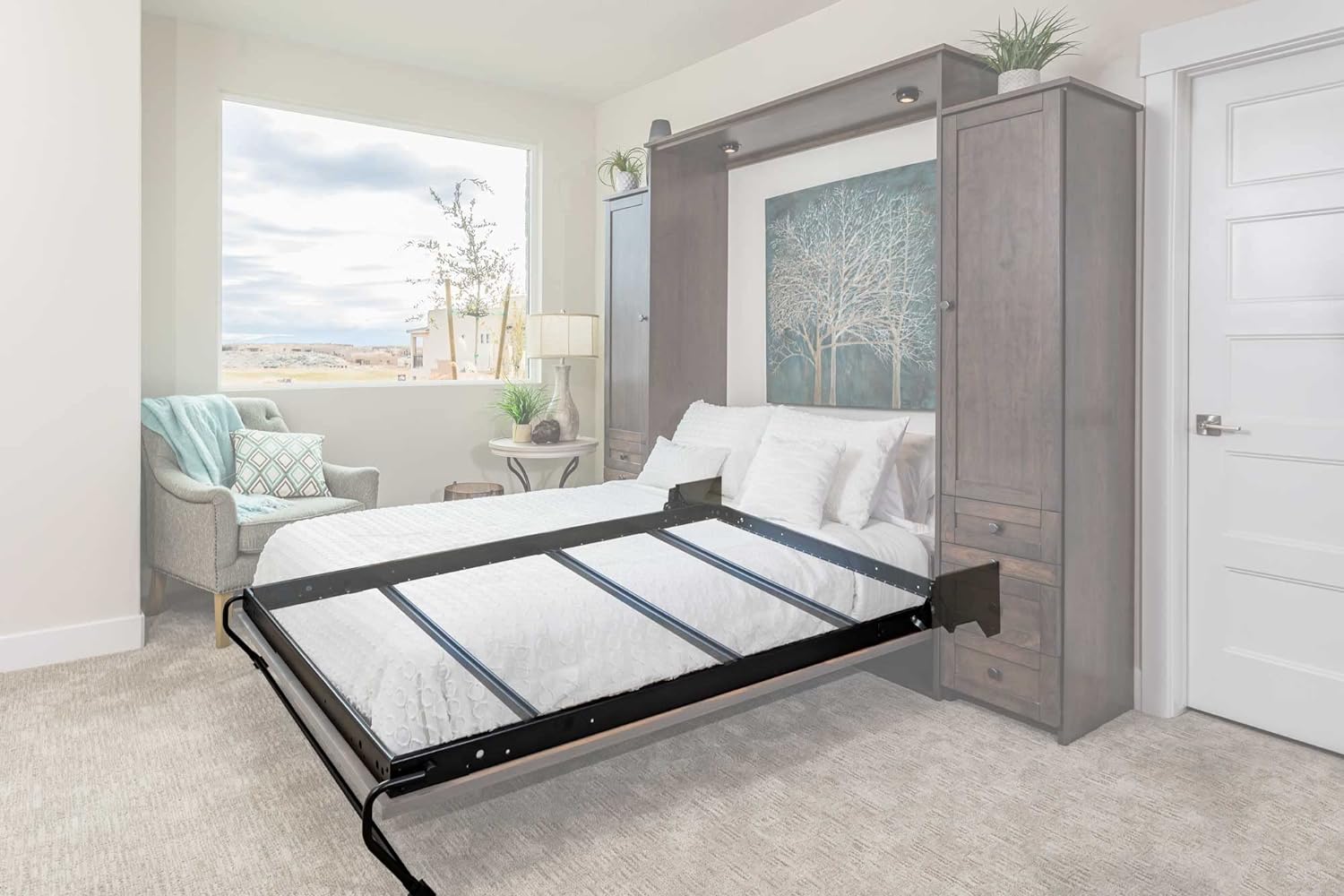The Murphy bed mechanism is the perfect solution for cabinet shops and DIYers. This mechanism is the same mechanism that we use in all of our Studio Series Murphy beds. It includes the mechanism plate, the springs, the bed rails, and the legs. The Murphy bed mechanism also includes the cut list and plans to show you exactly what you need to build your very own Murphy bed. All you need to supply is the wood, and any handles or other hardware you may want to dress your Murphy bed up. This mechanism is commercially rated and has been designed for daily use, so it is the best option for cabinet shops looking to build a high-quality Murphy bed for their customers.
