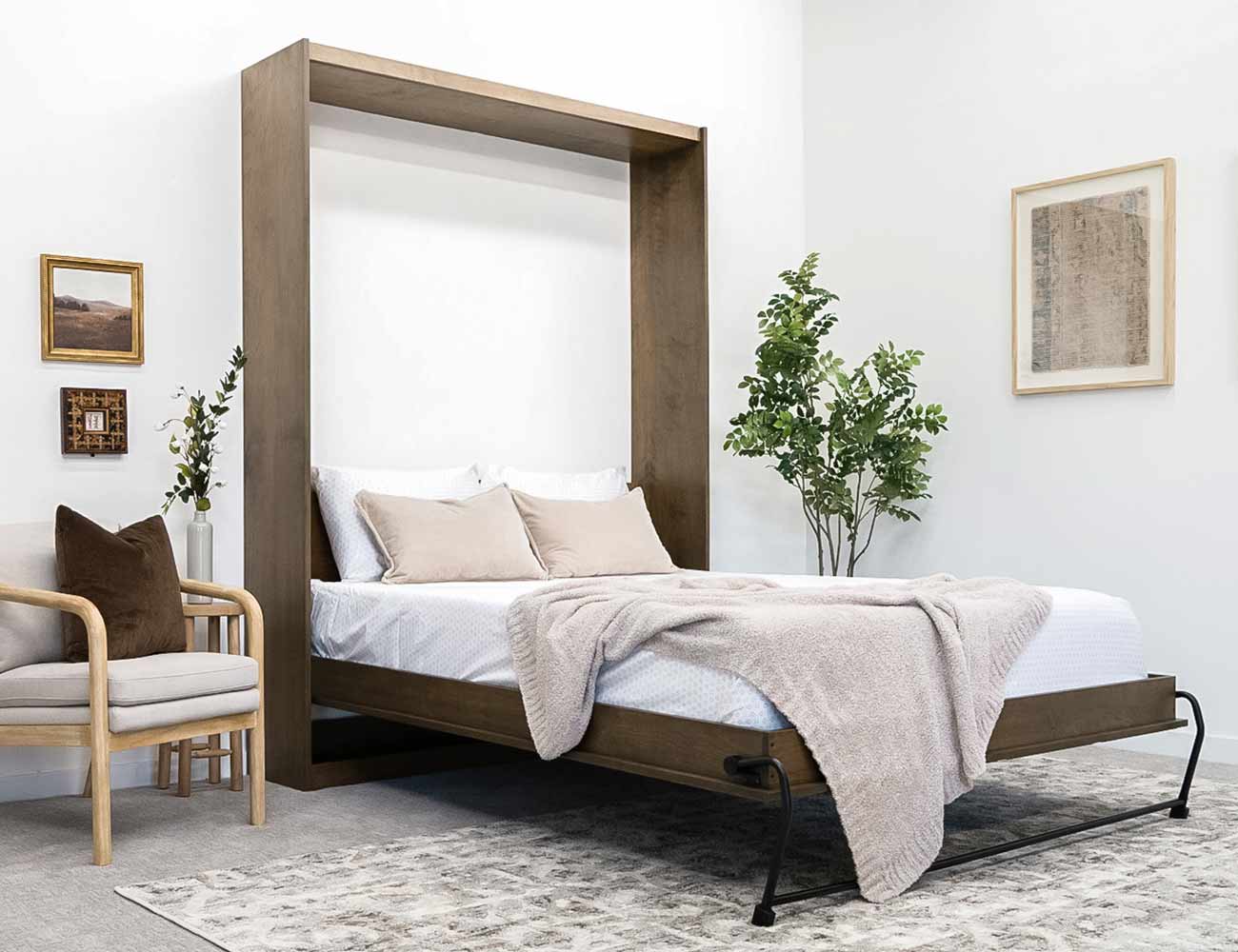 This Murphy bed mechanism is commercially rated and has been designed for daily use, so it is the best option for DIYers and cabinet shops looking to build a high-end Murphy bed. Lumber is not included.