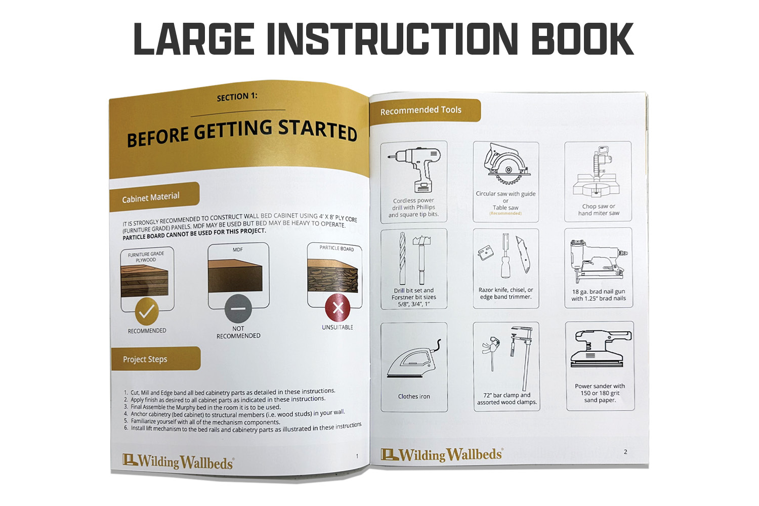 Care should be taken in selecting the material you use to build your Murphy bed to ensure it is safe and comfortable to operate. Please adhere to the guidelines below in planning your Murphy bed and purchasing construction materials. Wilding Wallbeds is not responsible for any damage or injuries sustained from the use of improper construction materials.