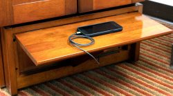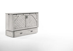 These freestanding beds are versatile, suitable for rooms with low ceilings or rental situations where wall or floor attachments are not possible. The gel-infused memory foam mattress is comfortable and durable, supporting up to 600 lbs for two adults. Flip-up nightstands and built-in power outlets add convenience for guests. While not manufactured by Wilding Wallbeds, the Murphy Cabinet Bed upholds similar standards of wood construction, attention to detail, and durability.