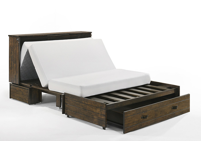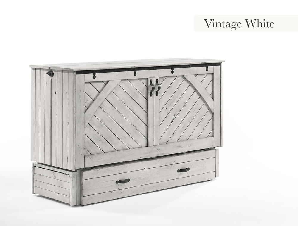 Murphy Cabinet Beds, also known as Chest Beds, are ideal for multipurpose rooms such as guest rooms, dens, living rooms, or TV rooms. These innovative beds fold into stylish chests, keeping rooms clear and attractive. The top of the cabinet remains stationary, making it suitable for a TV or display items. Models like Clover, Poppy, and Sagebrush feature a large accessible drawer for storing linens or personal items.