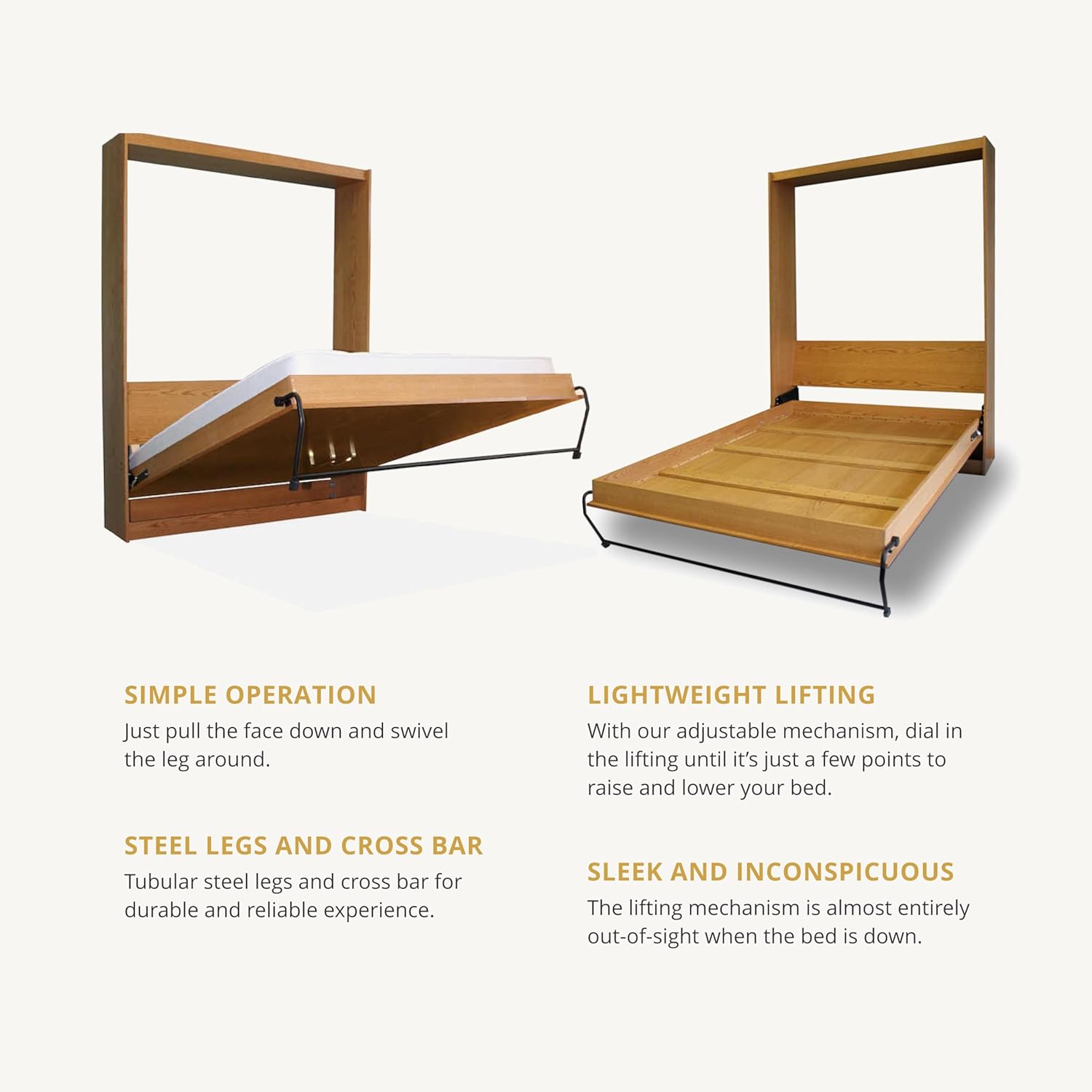 This Murphy bed mechanism is commercially rated and has been designed for daily use, so it is the best option for DIYers and cabinet shops looking to build a high-end Murphy bed. Lumber is not included.